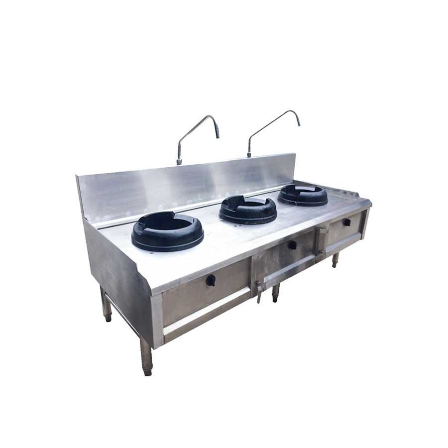 Thiết bị bếp Á ba được thiết kế theo kiểu dáng công nghiệp, chất liệu inox bền bỉ và dễ dàng tẩy rửa vệ sinh, hệ thống đánh lửa nhập khẩu Đài Loan chất lượng tốt.
